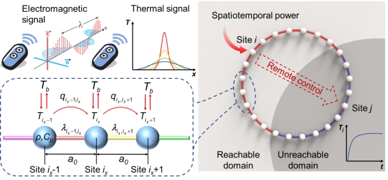 在热晶格中主动调控局域态,为非平衡热力学研究提供了关键手段,建立起系统在弛豫过程中的热行为与施加在其上的外部物理约束之间的直接联系,并为从纳米到宏观尺度的能源管理开辟了全新路径。然而,传热过程并没有无需介质传播的电磁波易于调控,热晶格中的热化过程本质上是邻域相互作用,其特性源于傅里叶扩散的介质依赖性和路径依赖性,这使得远程调控局部热态成为重大挑战。