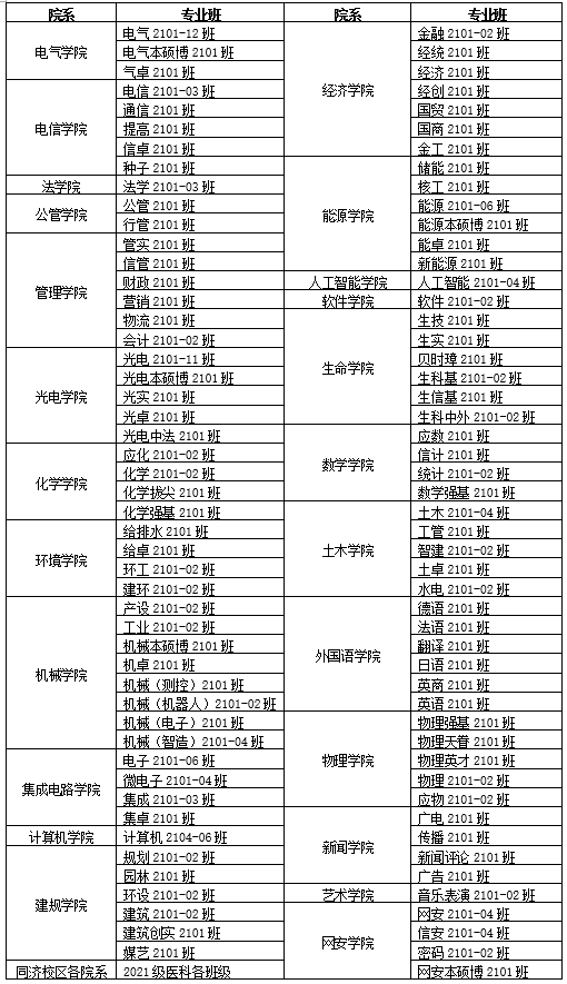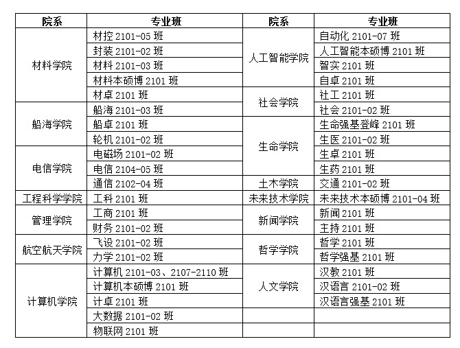 第一批选课院系及具体专业班级: