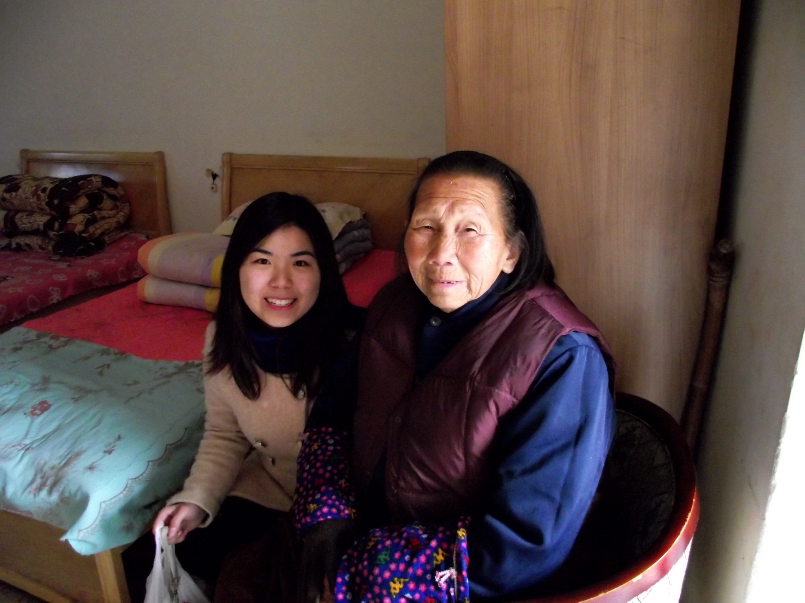 慰问中,大家注意到,一名老奶奶双手撑着一张椅子,脚踢着一个果盘盖,在院子里来回走动,经询问才知道,原来老人腿脚不太灵便,其他锻炼器材用不了,每天都只能靠这样锻炼锻炼。听到这种情况,光电公司的闵文斌同学立即扶着老人围着院子散步。还有同学亲手给老人们梳头、剪指甲。范沿沿和杨明娟同学与几位老奶奶促膝长谈,她们还喂老人们吃水果,直到最后队伍离开的时候还依依不舍,和老人们拍了很多照片留念。