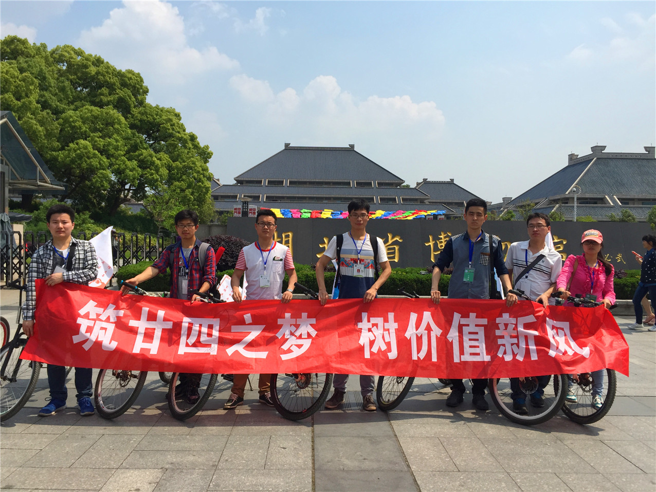 随后,骑行小分队又来到了湖北省博物馆。向游客们宣传文明出行的重要性,号召大家自觉践行社会主义核心价值观,并邀请他们在“低碳出行,文明出游”的倡议书上签字。