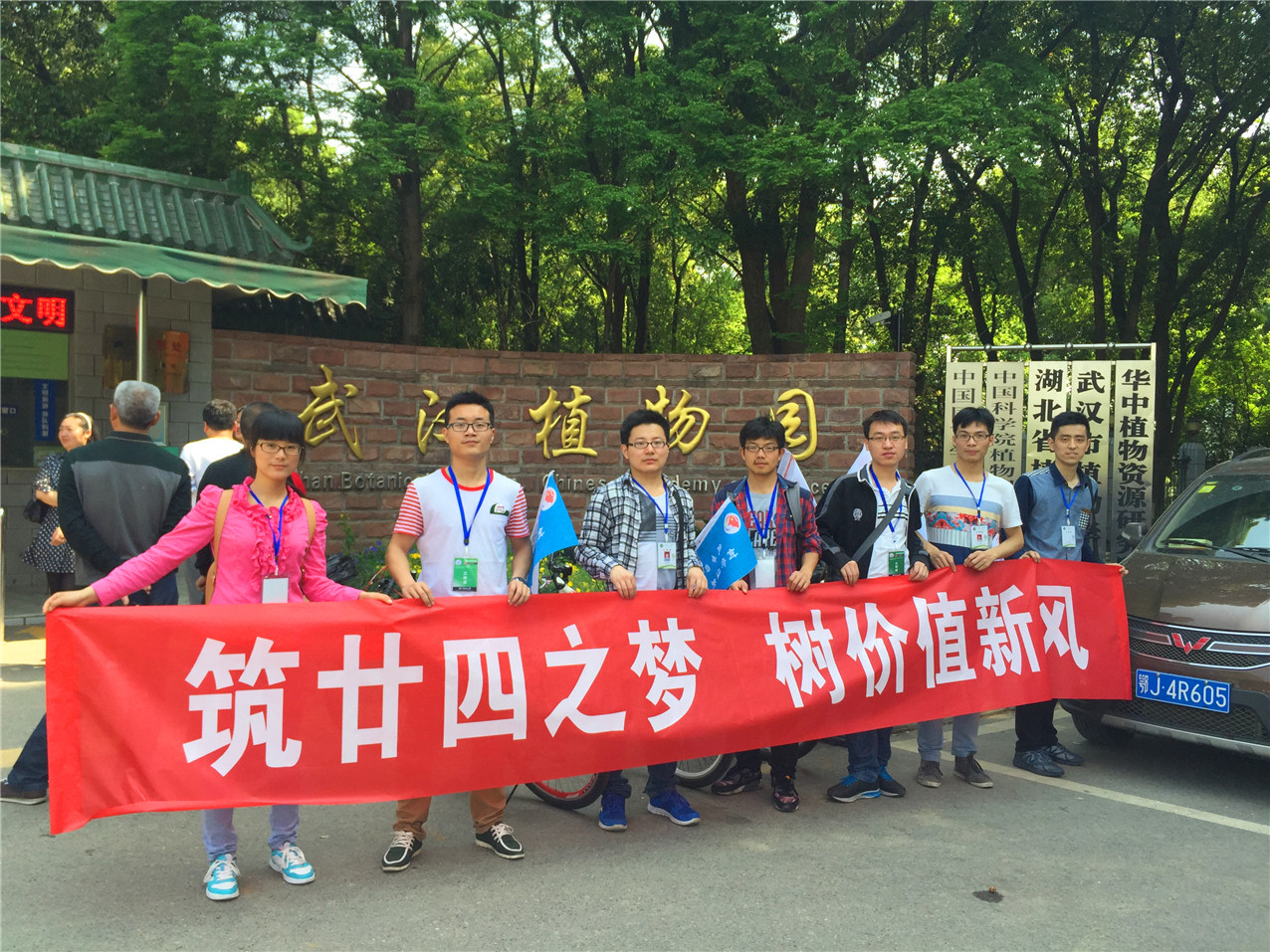 骑行小分队到达的第一站是武汉植物园。在这里,通过与志愿者的交流,了解了这一城市氧吧在市民生活中发挥的重要作用,同时也就生态文明建设的问题展开了讨论。骑行活动吸引了众多游客的关注,他们纷纷拿出手机记录下活动的过程。