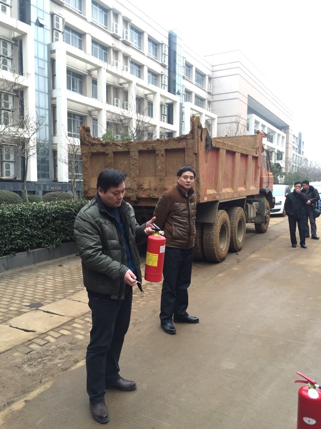 当天中午12:30,我们又根据既定安排,让硕15级研究生进行了第二批的演练。中午1:15左右,第二批演练结束,第一天消防演练也暂时告一段落,工作人员将使用过的灭火器进行了收集整理,然后联系消防公司进行装粉维护。