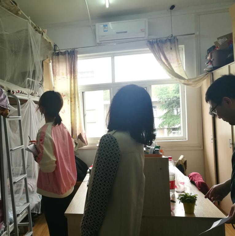 走访过程中,对研究生的住宿环境,设施都给予关注。针对电线、插头、用电器等充满着安全隐患的角落以及寝室中电线、开关的老化等现象,李智老师督促同学们有问题到宿管处进行报修,确保每一名员工能够住在一个安全无危险的寝室中。同时,督促同学们爱护寝室环境,认真做好宿舍卫生,共同营造良好的学习生活环境。