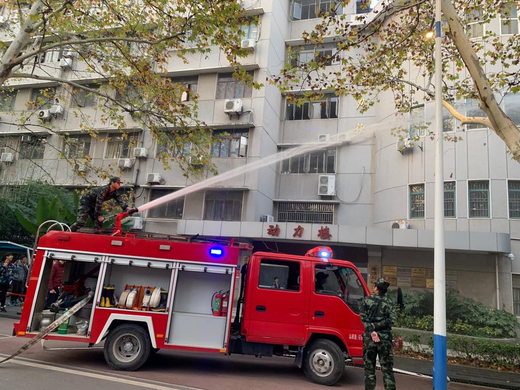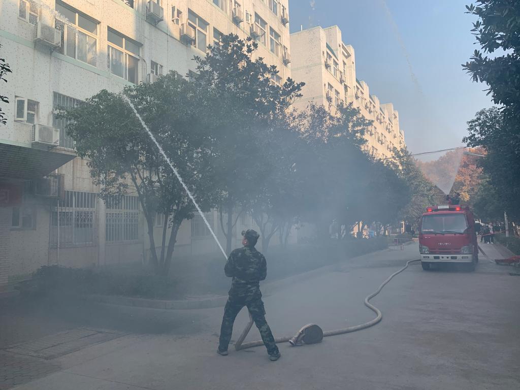 全体新生和部分教职工参加了消防演习。此次消防演习得到保卫处、后勤集团物业总公司等单位的全程指导和支持。