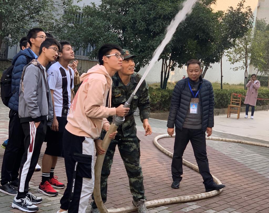 最后是室外消防栓的培训,师生代表在保卫处老师的指导下,手握消防水枪进行“实战”,成功扑灭“火种”。