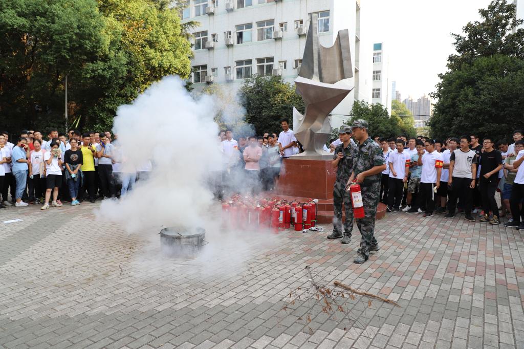 2019级全体新生参加了消防演习。此次消防演习得到保卫处、后勤集团物业总公司等单位的全程指导和支持。