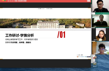 围绕学情分析的工作研讨,班级同学总结了上学期的学习工作并规划本学期的进度安排。学习委员杨璐同学就班级情况做整体介绍,班级学习氛围良好,同学们在集体自习、到课率等方面做得很好,但是在课后交流和时间分配上稍有不足,班级学习制度中将增加两人一小组监督机制和学习交流平台的构建,并辅以奖励措施,希望大家取长补短,形成良好的互帮互助体系。唐嘉辰同学分别从个人和班长两个角度,交流了上学期出现的问题并提出切实可行的建议。杨志文同学强调了科学作息的重要性,要将自己的计划落实到行动中。骆涵同学分享了自己的学习感受和体会,在大学不断适应和改变中自己的毅力有了很大的提升,以后将更加努力,和班集体共同成长。这学期转专业过来的郝佳同学则反复强调不要熬夜,一定要提高效率,多尝试各种可能性。徐敬涛同学说要有目标的去学习和生活。研究生班主任郑妮婷总结了班级共性问题并给出了针对性的意见,工作研讨结果将增补到班级成长方案,助力大家高效学习,快乐生活。