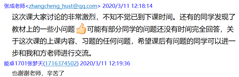 专业学习不停止。面对疫情,班级同学深知科学发展和技术创新之重要,深知勤学奋斗和增长才干之必要,积极响应“停课不停学”的号召。在线上开课之前,班委就早早与任课老师取得联系,商讨学习方案。考虑到录播形式不能和同学们实时互动,影响教学效果,班长和副班长两人就试验钉钉、QQ等多个平台,最后决定以QQ群直播的形式来教授课程。课前,班委都会协助任课老师提前几分钟调试设备,确保学习不落一人。课上,能卓1701班学子积极发问,与老师展开激烈的讨论,甚至有时远远超过授课时间,讨论交流依然没有结束。课后,学习委员都会及时将课程录像发到班群,同学们不仅超额完成作业题,还利用中国大学MOOC等平台补充学习。每逢周末,班级同学还会开展锅炉原理等课程的研讨,提出了很多关于教学的建议,得到了授课老师极大的赞赏。