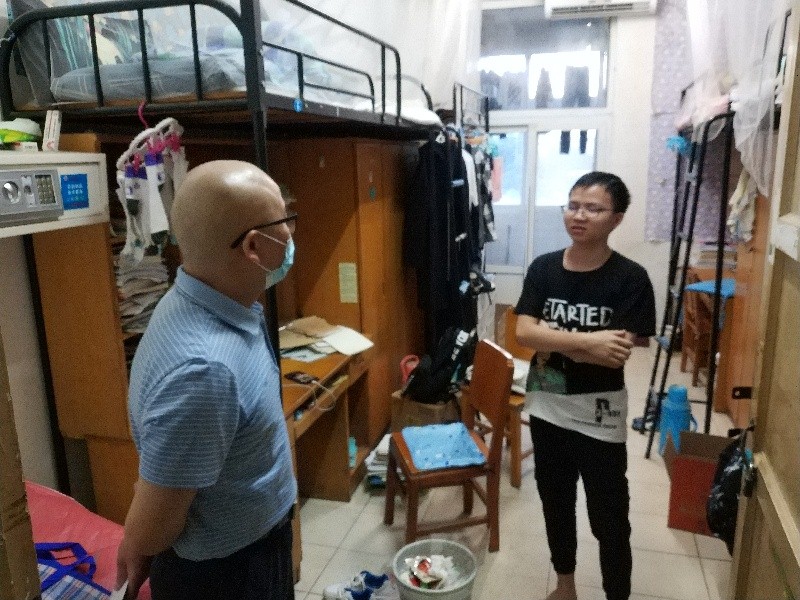 8日晚上,公司全体院领导走访了全部返校员工寝室,听取同学们的返校意见和感想,与同学们交流毕业感想,让同学们感受到了老师们满满的关怀。