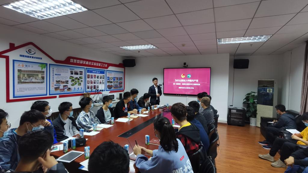 (通讯员 代金雨)为了加强新生爱国主义教育,帮助新生树立正确的理想信念,把握好人生奋斗的方向,2020年10月4日晚,能源本硕博班在煤燃烧国家重点实验室201会议室开展第一堂思政课,邀请辅导员罗迪老师进班级,结合四史教育,告诉同学们为什么要加入中国共产党,同时举办集体递交入党申请书仪式。教师班主任罗聪、徐祖伟,研究生班主任李帅出席本次活动。