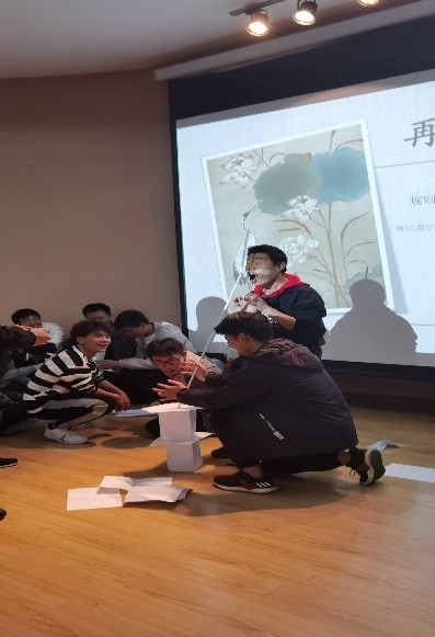 在介绍普及传统节气和习俗的同时,还穿插进行了游戏环节。来自六个班级的同学相互配合、团结合作、大家一起努力为小组赢取积分,并在活动中建立了友谊。