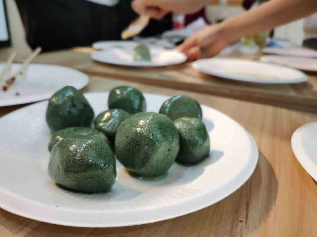 在第二天的主题活动中,参加的同学们分组完成了富有趣味的手工活动,青团小组的同学们体验了从配料、和面到包馅的制作全过程,并最终制作出了豆沙和咸蛋黄两种口味的新鲜青团;书签香囊小组,同学们一起动手缝制香囊,在木签上作画题字,亲手制作了好看的书签;风筝小组的同学们更是充分调动才能,手工支起风筝骨架,并在风筝上涂画自己喜欢的图案,活动结束后,每一位同学都是收获满满。
