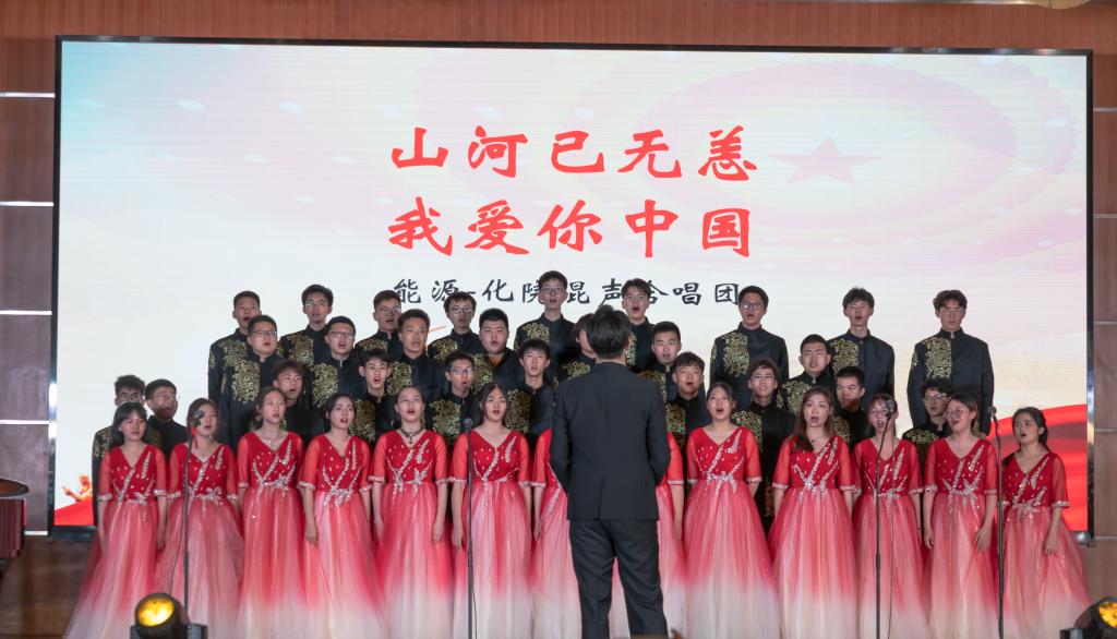 《歌唱祖国》、《我和我的祖国》一步步带动着现场的情绪,将比赛推向高潮,怀着满腔的爱国情怀,全场的同学们跟随音乐挥舞着的手中国旗。最后能源合唱团演出了精心编排的《山河已无恙》和《我爱你中国》。