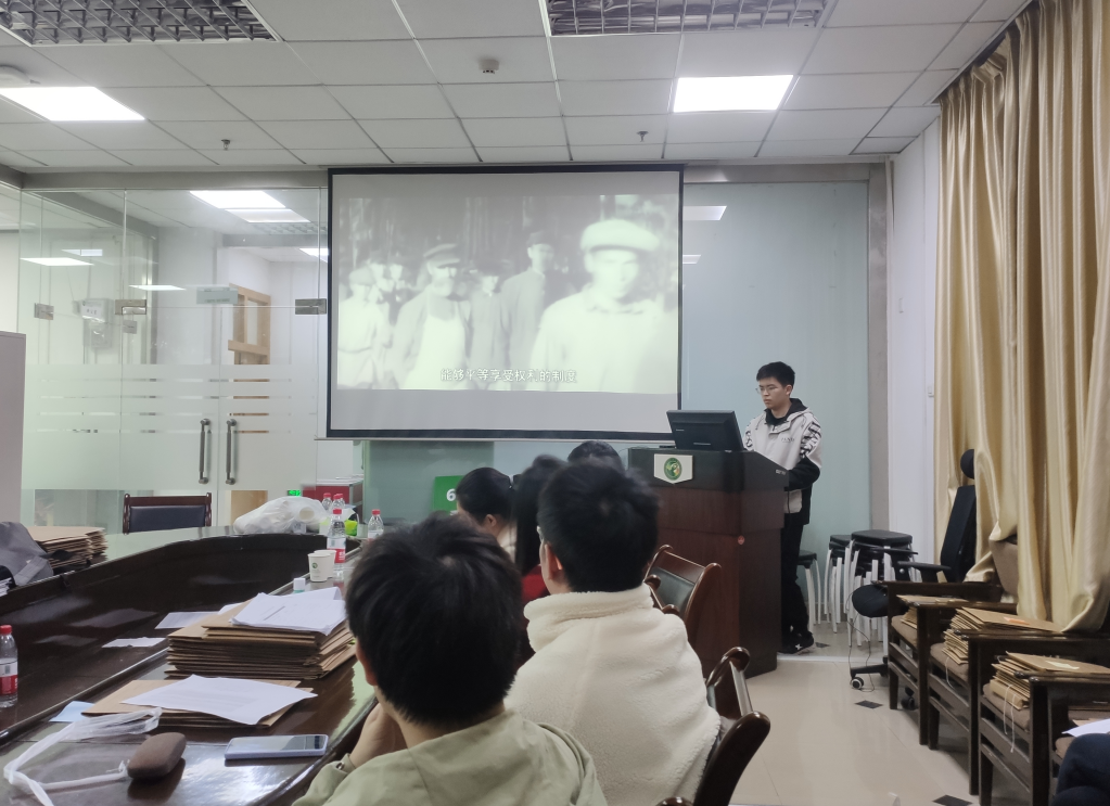活动期间,为帮助大家更加形象地认识到中国民主的科学性、实践性、广泛性,全体党员同志共同观看了有关中国与美式民主的几段视频资料。视频以普通民众和历史事实的角度展现中国基层决策与美国社会现状。观后,黄俊同志表示,在“西方视角下的中国民主”与“中国视角下的西方民主”的鲜明对比下,无疑体现出了中国的全过程人民民主是真正的“民主”,无疑展现了中国民主的强大优越性。