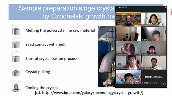 Paul老师以复合系统Mn5-xFexSi3为例带领同学们探讨了磁冷却技术的材料要求,讲述了散射原理并描述了中子衍射和X射线衍射方法,重点讲述了MLZ研究反应堆的粉末衍射光束线SPODI;并在具备了解MnFe4Si3中MCE的基本机制的背景下,演示并论述了附加的X射线粉末衍射数据和磁性测量值。