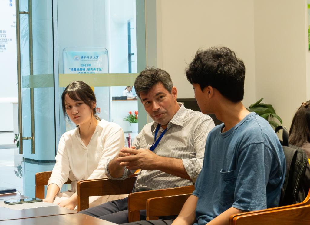 颁发证书环节结束后,师生来到能咖空间进一步交流与探讨。营员们争先提出自己对能源事业的认识和疑问,如新能源汽车的应用前景、风机中的力学问题等。Georgios Karalis与大家分享了他的家乡——希腊,介绍当地气候、风景和大学学习氛围,并邀请同学们去欧洲游览。