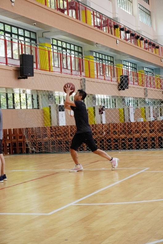 刘志春老师在球场上积极跑位,持球组织队伍传切战术,面对严防死守,刘老师用灵活多变的脚步突破上篮。