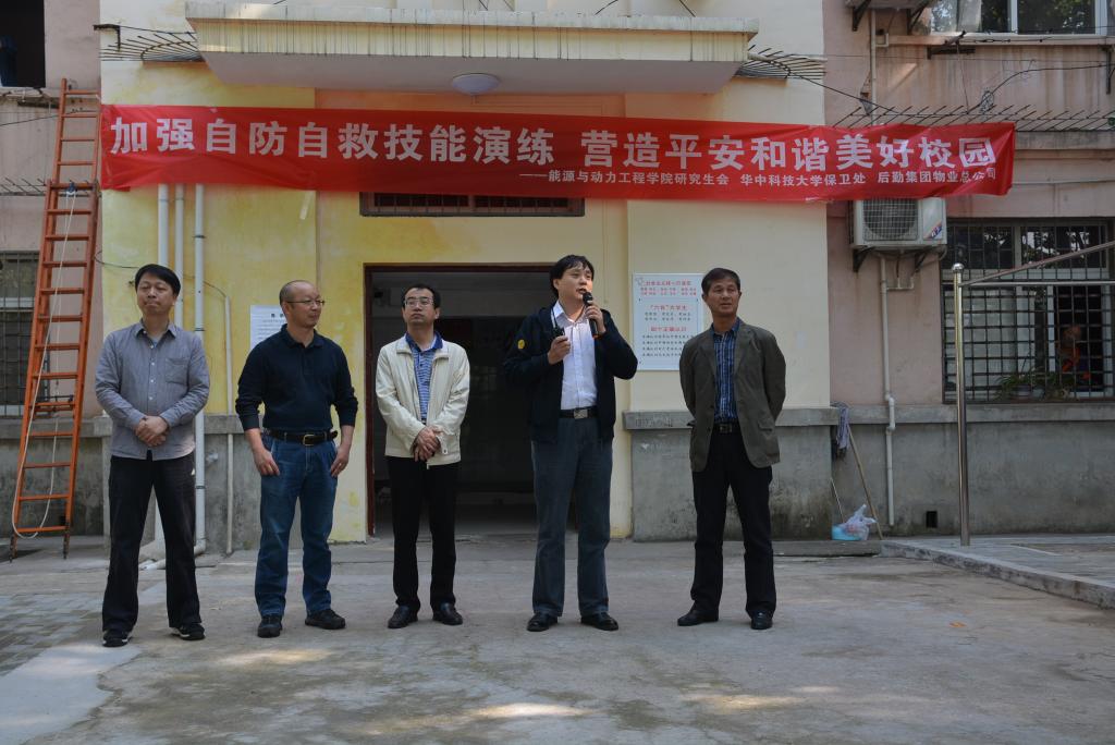 同时,来自校保卫处、物业总公司的领导也分别介绍了本次演习的基本情况,并对此次消防演练表示大力支持。同时希望广大研究生同学提高消防安全意识,了解在消防事故中该如何应急,加强应急指挥、协调和处置能力,切实提高危机处理能力。