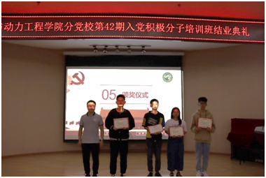 在经过小组“学党史,跟党走”交流学习、结业考试等环节后,伟德BV1946官网2021年春季分党校培训班结业典礼在动力楼402举行。学员分小组依次上台展示学习成果。有的小组进行情景剧表演以还原真实历史事件,在重温党的历史中鲜活生动地演绎历史人物的事迹;有的小组通过PPT演讲汇报“学党史,跟党走”小组交流研讨情况,展示小组成员学习心得;有的小组通过录制视频记录了培训期间的温暖点滴,刻画了自身通过学习获得的巨大进步。在生动的演绎和情感的共鸣中,学员们感同身受携手同行,朝着优秀党员的方向大步迈进!