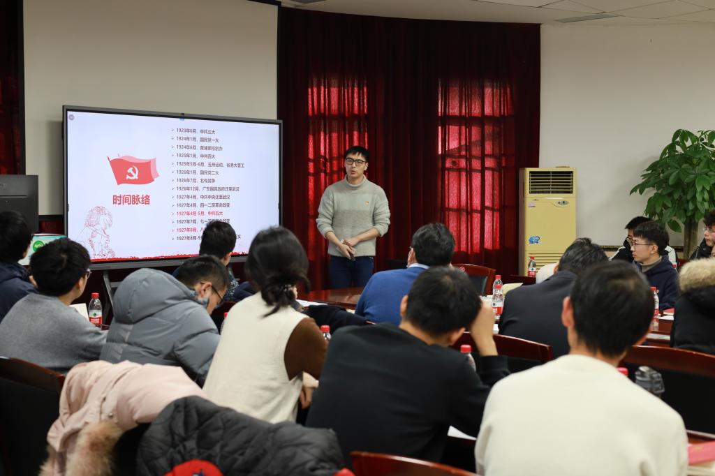 硕2002班党支部的张铭辉同志结合自身对党史的学习体悟,为大家讲授了“伟大的历史转折——中国共产党早期在武汉的革命探索”微党课。支部的王勇积同志给大家分享了支部开展的“聚焦能源低碳发展,加强华中大能源人凝聚力”主题实践调研活动成果。支部的其他成员分别就理论学习、参观实践、志愿服务、基层挂职以及支部开展的“读原著、学原文、悟原理”读书会等方面分享了此次党史学习教育系列活动的收获与体会。