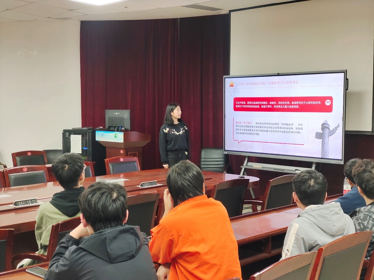 首先,高玲同志带来了对习近平总书记在中央政治局第三次集体学习的重要讲话精神的学习分享。本次学习围绕着“科技”展开,阐明了科技发展在国家战略中的重要地位,各级党委和政府要把加强基础研究纳入科技工作重要日程,加强统筹协调,加大政策支持,推动基础研究实现高质量发展。高玲同志说道:“作为老员工党员,我们要积极学习先进的科学文化知识,求真务实,守正创新,踔厉奋发,锐意进取,争取早日为国家的科技进步贡献出属于自己的力量。”