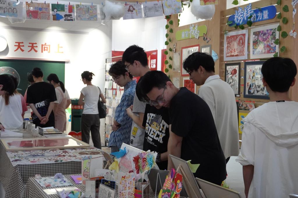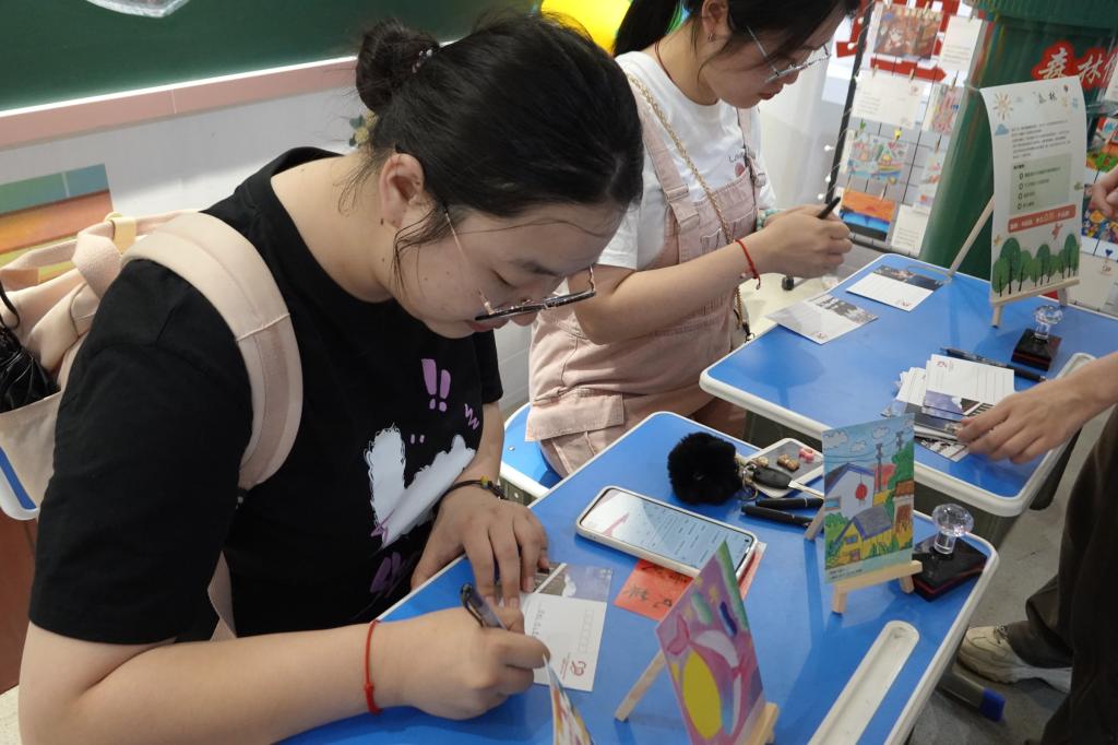 讲解结束后,在2023届研究生支教团志愿者覃佳玲的带领下,同志们共同参观了支教小朋友们的美术和手工作品等展品,观看了“研支团”的宣传片。并为远方的小朋友们写了明信片。
