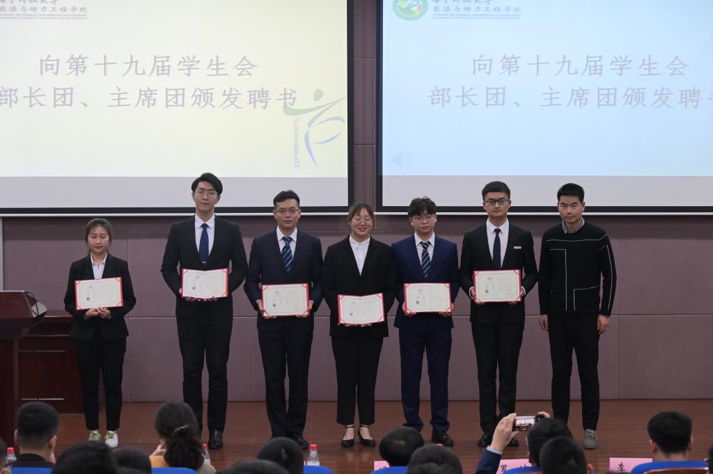 孙伟老师、李锡老师分别向院19届员工会主席团、部长团颁发聘书。