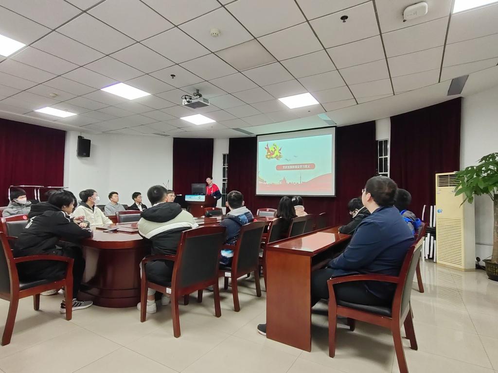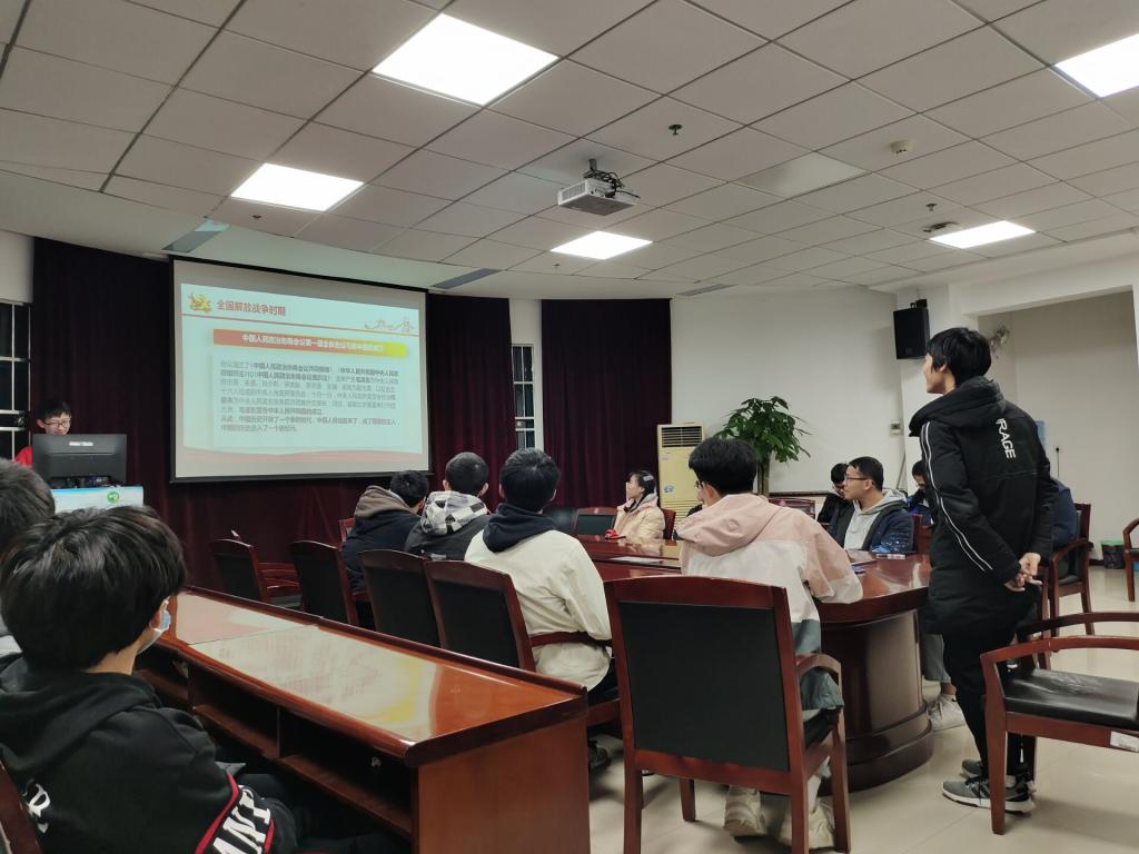 接着,团支书陈钰淇同学带领同学们学习两会精神。陈钰淇同学引用两会会议亮点、新华网等媒体热评,介绍了两会主体内容的13个要点。同学们也围绕热点话题展开了讨论。吴眺隐同学感叹道:党带领全国人民迎难而上、奋力拼搏,取得全方位、开创性成就,我们要紧密团结在党周围,听党话、跟党走。姚智全同学补充说:党和国家对我们的期望也很大,我们要努力学习、脚踏实地,做好社会主义接班人。十三五圆满收官,十四五的序幕已经拉开,同学们纷纷表示要勤学自勉,投入到社会主义建设事业当中。