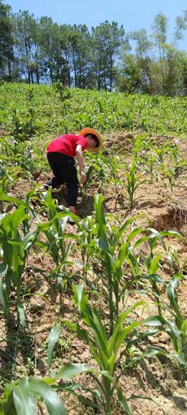 为亲身体验了农耕不易,实践队员们陪同蚂蚁堆村委会党总支字红梅书记、纪检委员罗恒明主任和石合海主任一起前往明子组和龙洞组调查退林还耕的秧苗生长情况。蚂蚁堆村地处山区,有些区域都没有通车只能步行,尤其是退林还耕点坡度很高,需要手脚并用才能爬上去,十分辛苦。罗淦同学表示:“仅仅是顶着烈日爬上山坡就几乎耗光了所有的力气,而这只是村委会干部每天工作的一部分,农民更是要在这样艰苦的条件下年复一年得种植。我虽然在农村长大却从未参与过农活,我是到了这里才明白农民的艰辛和‘粒粒皆辛苦’的真正含义。”