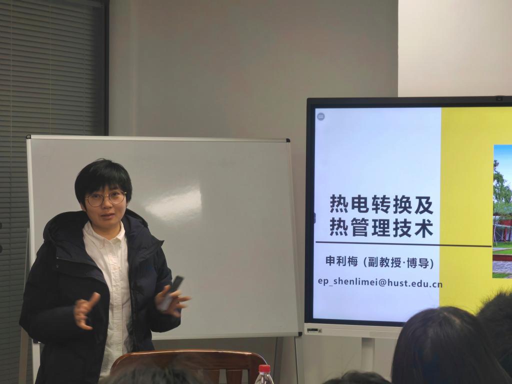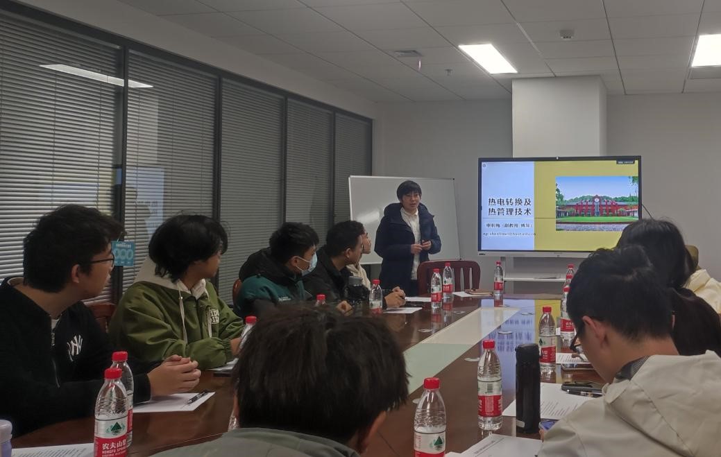 申老师主要从事热电制冷及发电技术、光电子器件热管理技术等方面的研究,涉及能源、材料、微电子、生科等多学科领域的交叉研究。她为同学们讲解了热电制冷及发电技术、热电快速精准控温技术、热电集成芯片冷却技术、热电空调技术和离网地区自供电技术等内容。