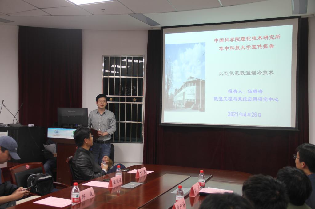 接着,中国科公司理化技术研究所邱波老师为同学们介绍了研究所的基本情况,他向同学们详细讲述了理化所的基础设施、科研体系、研究成果和团队力量,强调“少而精”的公司产品模式,每位导师亲自指导员工,课余时间还有很多诸如“素质拓展”、“K歌大赛”等丰富多彩的活动。同时邱波老师表示在理化所深造的华中大能源学子都非常优秀,祝愿同学们都能有美好的前程。