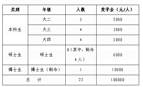 二、奖励对象及奖学金名额: