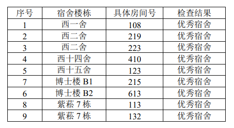 特此对检查结果进行通报,目前宿舍安全情况、卫生情况不达标的宿舍在5月12日之前整改完毕,请各党支部、班级在规定时间内落实自查情况。