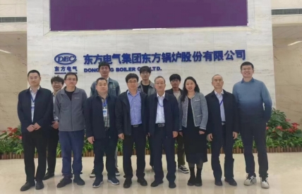 在东方锅炉股份有限公司霍锁善(首席专家)以及技术创新中心、综合能源事业部多名负责人的陪同下,杨荣贵教授一行参观了东方电气展厅,了解了东方电气集团辉煌的发展历史及主要业务。东方电气是中央管理的涉及国家安全和国民经济命脉的国有重要骨干企业,肩负保障国家能源安全的重大责任,为我国提供了大约四分之一的能源装备,是全球最大的能源装备制造企业集团之一。东方锅炉股份有限公司是中国一流的能源、节能环保、化工、核电、光热、氢能及综合能源领域设备供应商和综合服务提供商,是全球规模最大、系列最全、技术领先的清洁高效热电与热力动能锅炉的研发设计制造与工程总承包领军企业。在综合能源板块,东方锅炉股份有限公司拥有国内领先的熔盐储热、固体颗粒储热、储氢等长时储能技术。