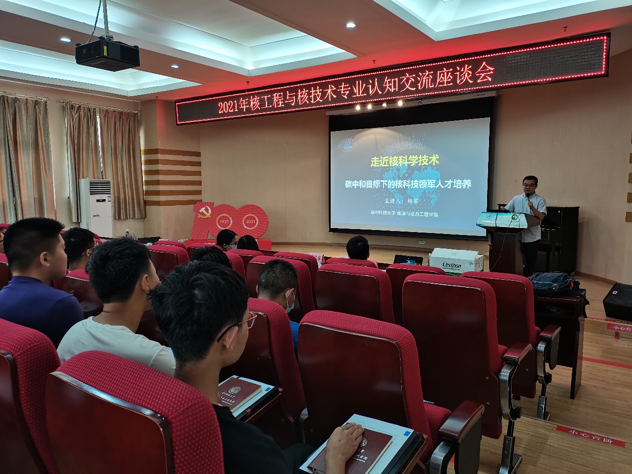 首先,公司副经理、核工系主任杨军老师做了题为《走近核科学技术——碳中和目标下的核科技领军人才培养》的讲座,介绍了核科学与技术的广泛应用,并提到,在当前碳中和目标及空天海洋极地探索的大背景下,核工程与核技术专业大有可为,勉励核工系的同学们在宝贵的四年中努力学习,学到受用终生的知识和能力。核工系副主任杨章灿老师深入浅出地介绍了核工程与技术专业,包括核专业的就业前景、往届毕业生去向、核专业的课程设置、奖助与实习等情况。其次,法公司胡帮达副教授做了题为《核共同体的行为规范和责任担当》的讲座,给同学们介绍了核共同体、核共同体的行为规范、核安全的基本原则和主要制度措施、核不扩散等内容,并科普了《国际原子能机构规约》、《不扩散核武器条约》等法律以及我国亟待出台的《中国的核安全》,进一步完善了核工系同学们的知识体系。最后,在场的核工系老师和同学们就大学期间的学习、保研、生活、科研等内容进行了互动交流,核工系员工代表甘澳同学分享了大学期间的经验和感悟。