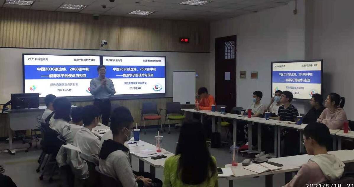 2021年5月18日,煤燃烧国家重点实验室党支部在西五楼506室成功举办了第一期博士后大讲堂,主题是“中国2030碳达峰,2060碳中和——能源学子的使命与担当”。杨应举、易琳琳、熊哲、马仑、田鑫等5位博士后主持了讲座,并与2018级-2020级20名本科生进行了交流。公司姚洪书记、孙禄副书记,国重第二党支部程强书记、罗聪老师,学工组李锡老师、孙春辉老师参加了会议。本活动同时也作为2021科技活动周的活动之一。