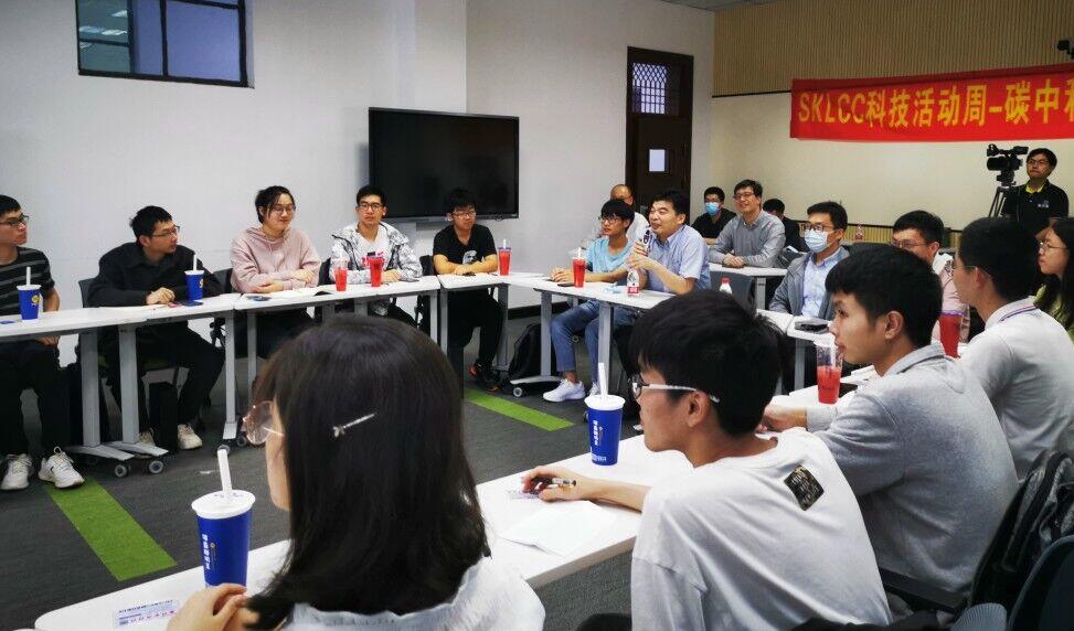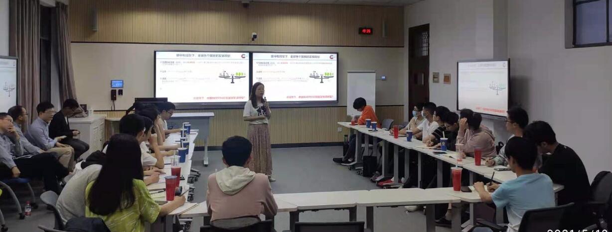 接着,五位博士后从不同角度依次向同学们做了双碳问题的具体报告。易琳琳博士和熊哲博士首先向同学们介绍了双碳的重大意义和挑战、实现2030碳中和、2060碳达峰的重要意义、以及我国出台的国家性政策。马仑博士随后解读了我国为实现双碳目标的综合方案,包括了化石能源转型、电能替代、产业转型升级等方面。田鑫博士和杨应举博士最后分别介绍了碳捕集技术和碳利用技术,碳捕集和碳利用作为CCUS技术中的关键环节,将对二氧化碳的减排起到至关重要的作用。