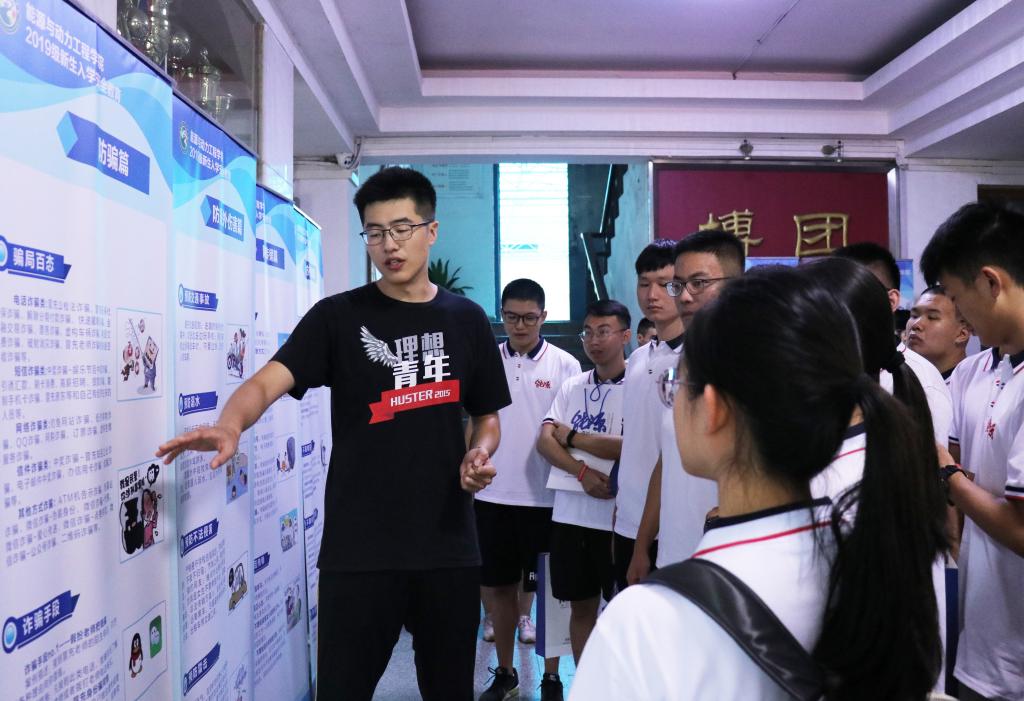 仪式结束后,新生们一齐走进动力楼展厅,聆听安全教育。辅导员详细向同学们讲解各类防火防盗防骗案例和要点。