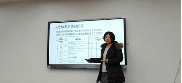 系主任陈汉平教授总结了工作成绩,并对学科专业、人才队伍及平台建设等工作进行了部署,特别指出新能源专业作为新的交叉学科,在专业建设方面还存在诸多困难与挑战,亟需建设符合新能源应用对象的专业基础课程体系,通过教材改编、过程及案例分析等进一步夯实专业基础。结合公司倡导的人才培养工程,利用新能源系教师队伍年轻化的优势,加大对本科生培养的针对性以及系统化、专业化,立德树人。副系主任杨晴副教授介绍了对专业基础课程进行教改的思路,建议打破学科壁垒,从课程上进行学科交叉,以“真正对员工有用”为目标,让员工学习更有获得感的课程体系,并通过更新基础课程中的新能源相关案例,使得本科生能更加顺畅的完成从基础课程到专业课程的过渡,增加对本专业的认同感。