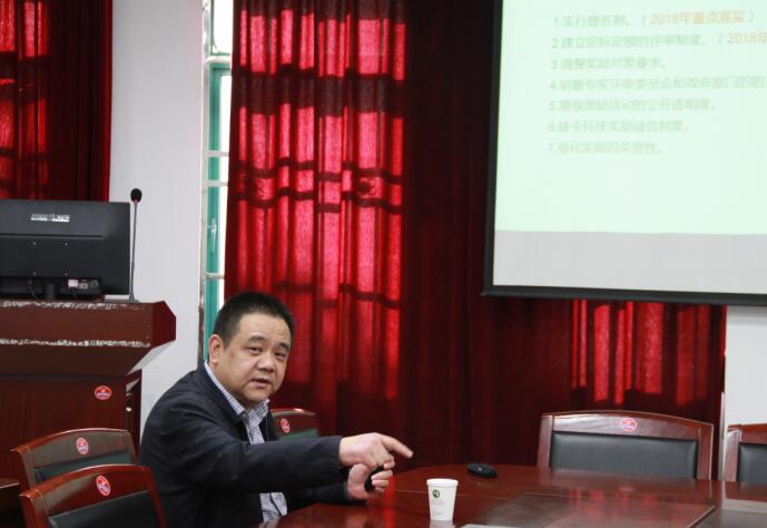 马荣主任首先介绍了2018年国家科技奖励改革的指导思想和基本原则,详细介绍了国家科技奖励的工作流程、改革举措、提名要求、提名书变化内容、时间安排、需要重点关注的事项,结合十九大的科技创新精神,对比往年申报国家科技奖的大量案例对改革举措逐条详细作了讲解,希望公司积极参与国家科技奖提名、早作准备、按新方案准备。