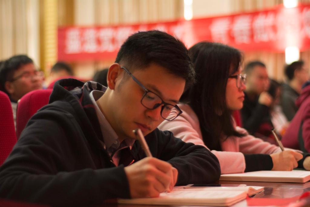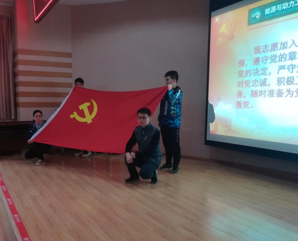 第二项,佩戴党徽、集体宣誓。宣誓仪式由硕1502班黄威同志主持,带领全体党员进行宣誓仪式。现场顿时响起了阵阵激昂的宣誓声,每位党员都用发自内心的声音抒发对党忠诚的决心,面对着党旗,大家的理想信念更加坚定。