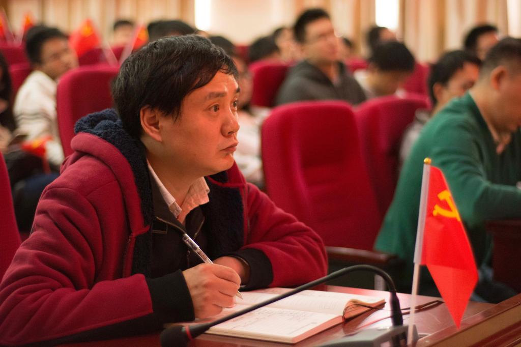 洪涛同志首先表达了自己作为预备党员在佩戴党徽向党旗宣誓时的光荣与自豪,随后通过自己担任网络文化组组长时的所见所闻,希望中国的青年共产党人能充满激情与正能量,在第一个一百年计划来临之际为建设伟大的中国梦发光发热。