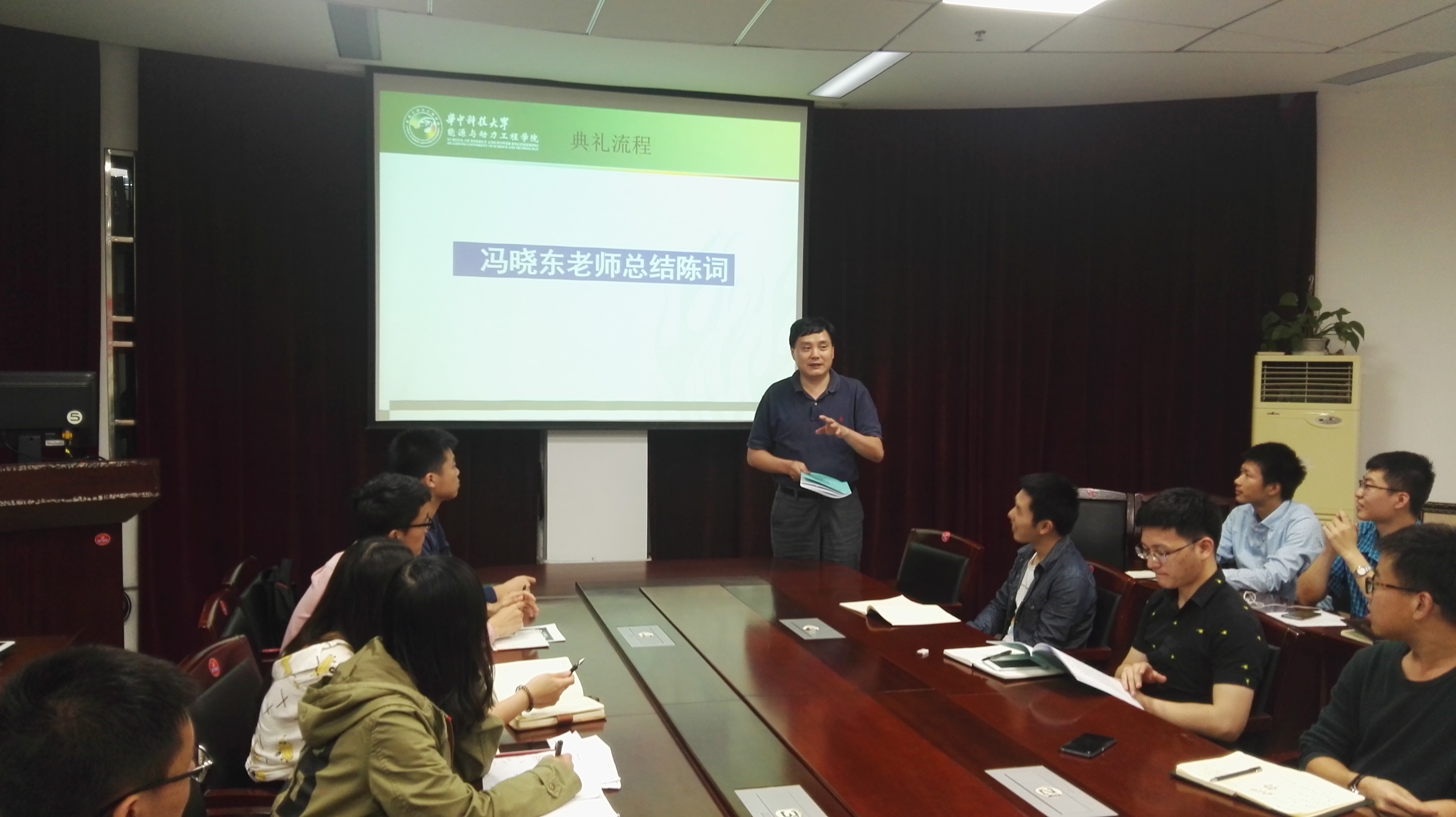 活动的开始通过观看能源才俊总结视频,简单回顾了一下整个活动的历程。接着第六小组和第八小组按顺序用PPT展示了他们小组实践锻炼中社会调的研过程与结果。随后冯书记和罗迪老师一起为获得本次培训班的优秀团队颁发了奖状,冯书记和李智老师一起为获得本次培训班的优秀学员颁发了奖状。获得本次培训班优秀团队分别是第三组、第四组、第五组。优秀学员分别是硕1601班王亮、热动1305班王昱升、硕1601班严幼玲、硕1607班何勇、硕1605班李阳光、硕1602班杨金健、能卓1601班支昕宇、硕1601班隋增光。