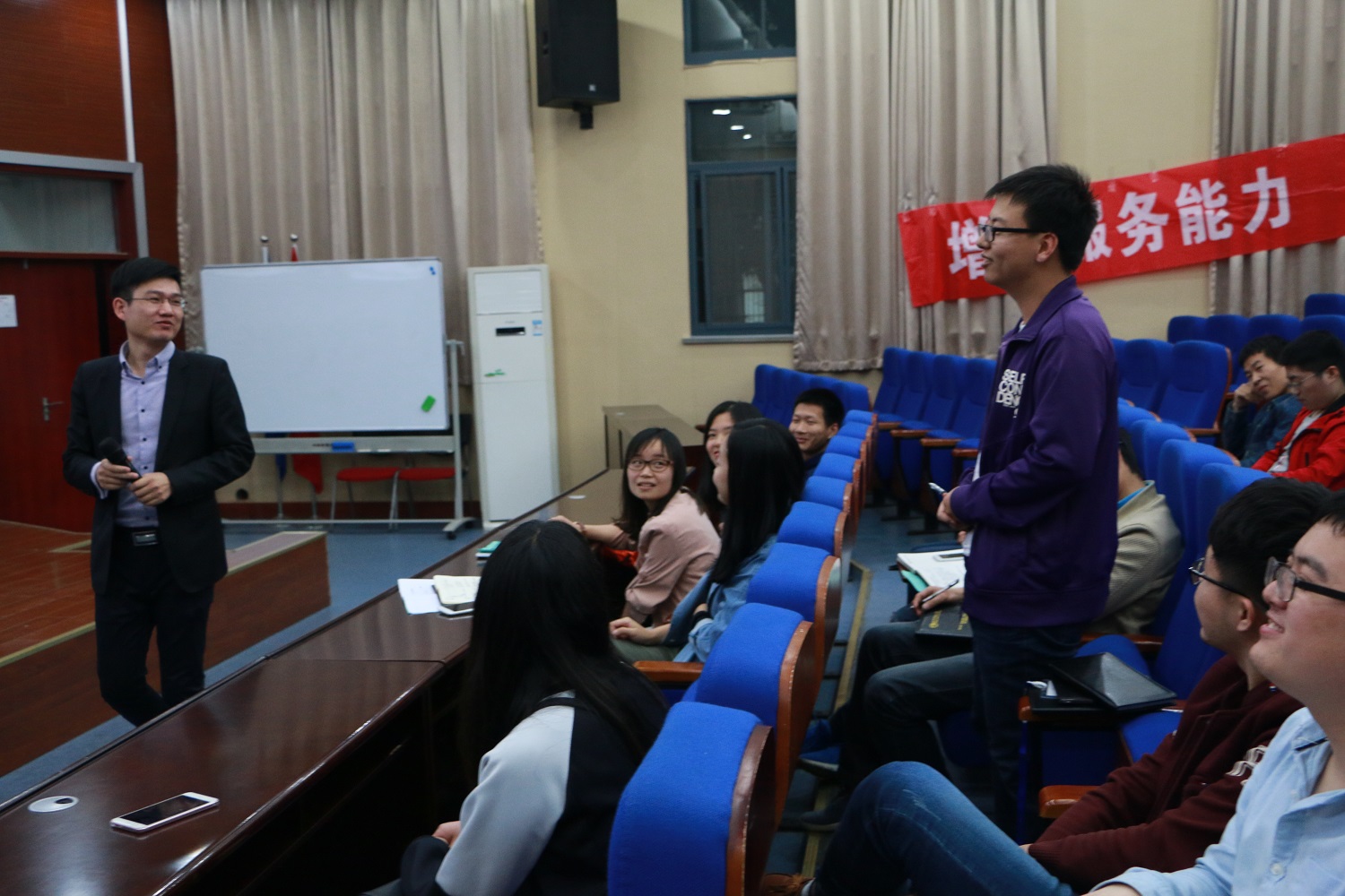 2017年5月23日晚7点,培训班结业典礼在动力楼201室隆重举行,出席结业典礼的老师有公司党委副书记冯晓东老师、伟德BV1946官网研究生辅导员李智老师,伟德BV1946官网员工辅导员罗迪老师。本届培训班历时一个多月,参与人数为64人,顺利完成培训人数为56人,其中本科生13人,研究生43人。针对员工干部的成长规律和实际需求,本次培训涵盖四次专题教育培训、两次实践锻炼和一次红色教育观影活动,力求达到我们提升综合素质,提高理论水平;增强服务能力,争做一流人才的活动宗旨,现进入结业阶段。