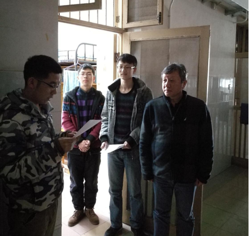 紧接着陈刚书记与6栋510寝室同学们一同为党员寝室挂牌。随后陈刚老师和冯晓东老师来到公司党建中心办公室,陈刚书记与员工代表在党建办公室交流,陈刚书记首先询问有没有同学学习有困难,当有同学说出自己的困难后,陈刚书记表示学习既要努力用工也要掌握方法,广大党员之间也要相互帮助,但考场上要严格遵守纪律。