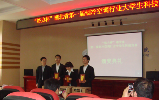5月19日,“格力杯”湖北省第一届制冷空调行业老员工科技竞赛在伟德BV1946官网动力楼202室和402室举行。本次比赛由伟德BV1946官网、武汉纺织大学、武汉科技大学、武汉工程大学、武汉商业服务公司承办,由湖北盛兴格力电器股份有限公司赞助,共吸引来自武汉各高校的10支队伍参赛。