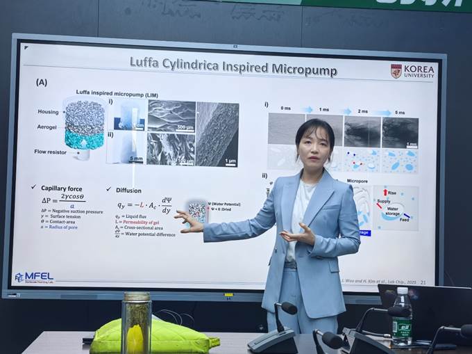 2025年7月9日,应工程热物理系胡润教授邀请,韩国高丽大学(Korea University)机械工程系Hyejeong Kim教授访问公司进行了学术交流,于清洁能源大楼N209会议室开展了题为《Learn from Nature: microfluidic water management technologies》的专题讲座,就微流体输运技术的研究现状和最新进展进行了介绍与交流。