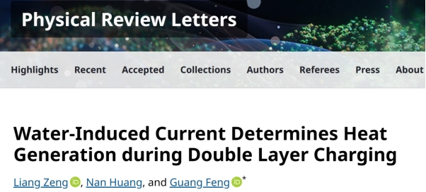 近日,冯光教授团队在双电层系统产热研究中取得新进展,相关研究成果以“水诱导电流决定双电层充电过程中的产热(Water-induced current determines heat generation during double layer charging)”为题,于2025年10月27日发表在《物理评论快报》(Physical Review Letters)。公司为唯一单位,第一作者为团队的曾良博士,通讯作者为冯光教授。