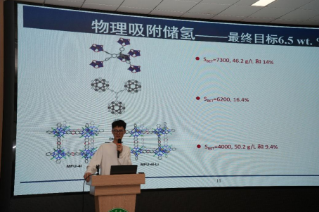 之后,卢旺博士带来了主题为《生物质气化联产掺氮碳材料及氢气》的报告。报告系统的介绍了现有的三种主要储氢方式,分别对高压气态储氢、低温液态储氢和固体材料储氢的储氢原理、储氢效果与储氢成本进行了讲解,并对比了三大储氢技术路线的产业化瓶颈。以此为基础,他引出了生物炭基固态储氢材料,着重强调各种催化改性生物炭的结构优势、储氢效果及其机理,描绘出其未来的发展前景。